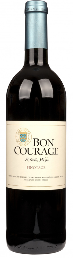 Bon Courage Pinotage heeft een mooie geur van zwarte bessen, pruimen, vanille en koffie.Eenmaal in de mond opent zich eveneens de smaak van rijp, gekonfijt fruit en een zekere kruidigheid van specerijen, mede dankzij de 12 maanden lagering op eiken vaten.Elegant van structuur en mooi in balans en tevens een goede integratie van de rijping op hout. Door de zachte tannines is de wijn jong al erg lekker, maar zal na enkele jaren opleggen nog zachter van smaak worden.