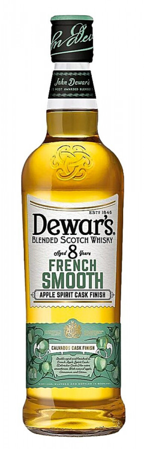 Dewars 8 Years French Smooth is een zachte amberkleurige blended whisky afkomstig uit Schotland. Deze whisky heeft na zijn dubbele rijpingsproces van acht jaar nog eens een finish ondergaan op voormalig calvados vaten. Dit proces geeft deze whisky een zeer sterk fruitig karakter, beginnend bij de vloeiende tonen van appel, Calvados en de verfrissende noten van citrus vruchten. Dewars 8 Years French Smooth heeft een alcoholpercentage van 40%.