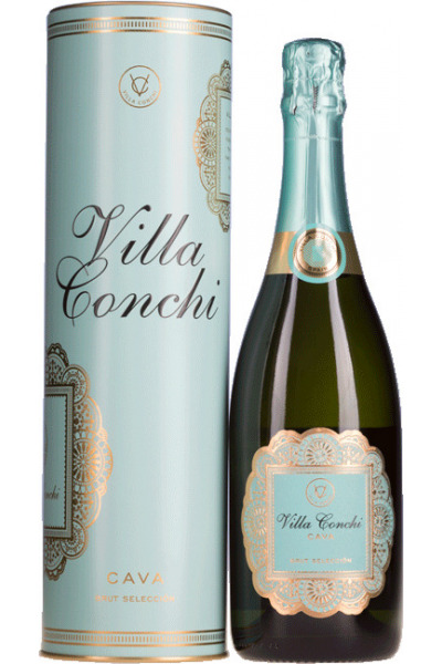 Villa Conchi Brut Selección (in metalen geschenkkoker) is goud met briljant groene tinten. Elegant met fijne bubbels. De blend is gemaakt van 30% Xarel-lo, 30% Parellada, 30% Macabeo en 10% Chardonnay. In de neus een goede intensiteit met fruit aroma’s en nuances van toast. De smaak is heerlijk fris, rijk, aangenaam en rond met een lange finish. Deze mousserende wijn doet niet onder voor een goede Champagne!